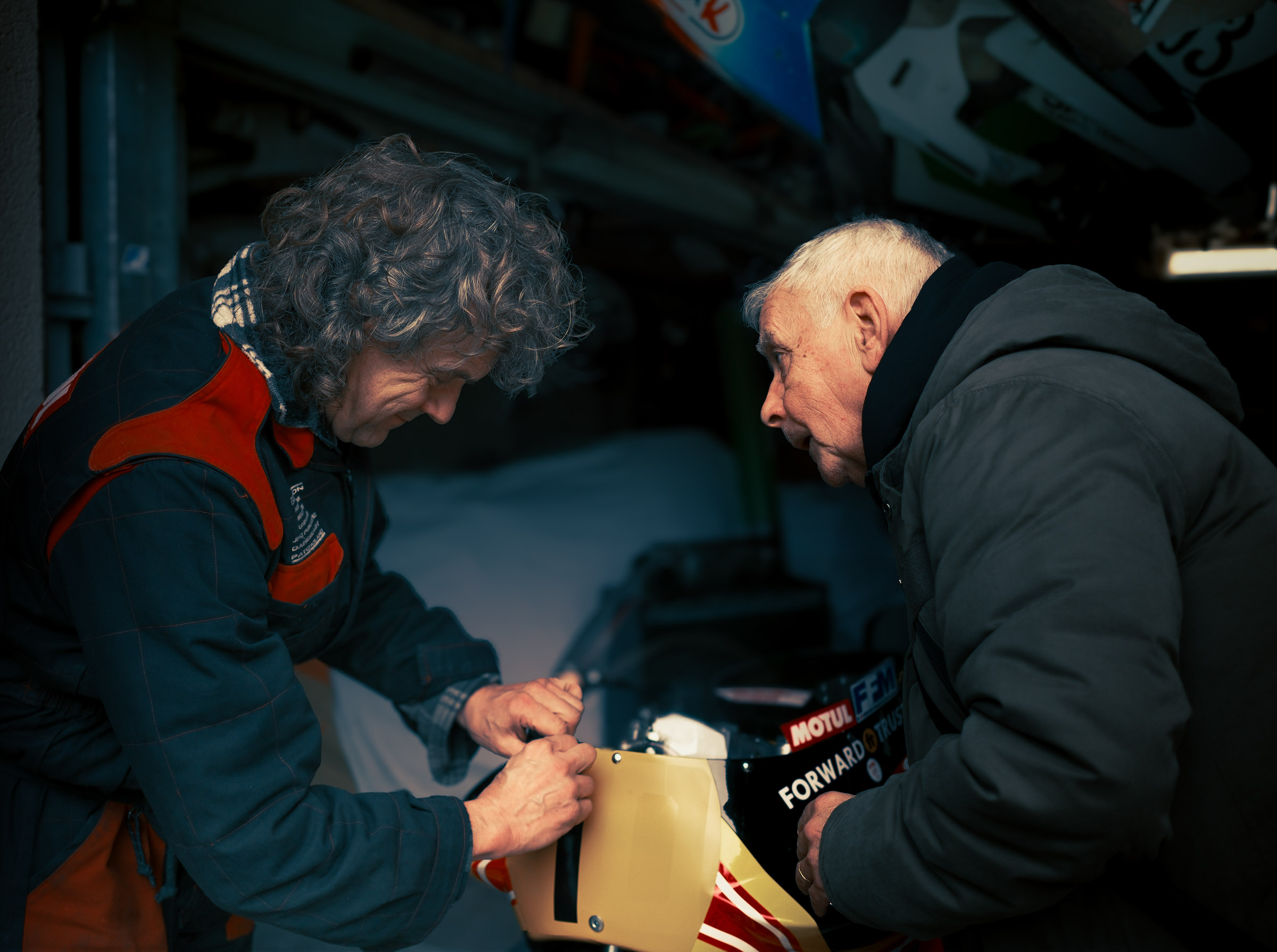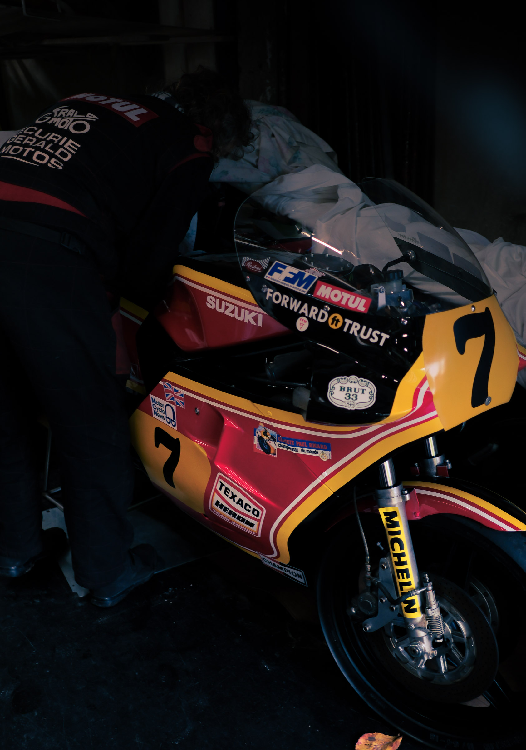 Gerald et son atelier — Suzuki, Yamaha, Elf. Motos des années 70-80.