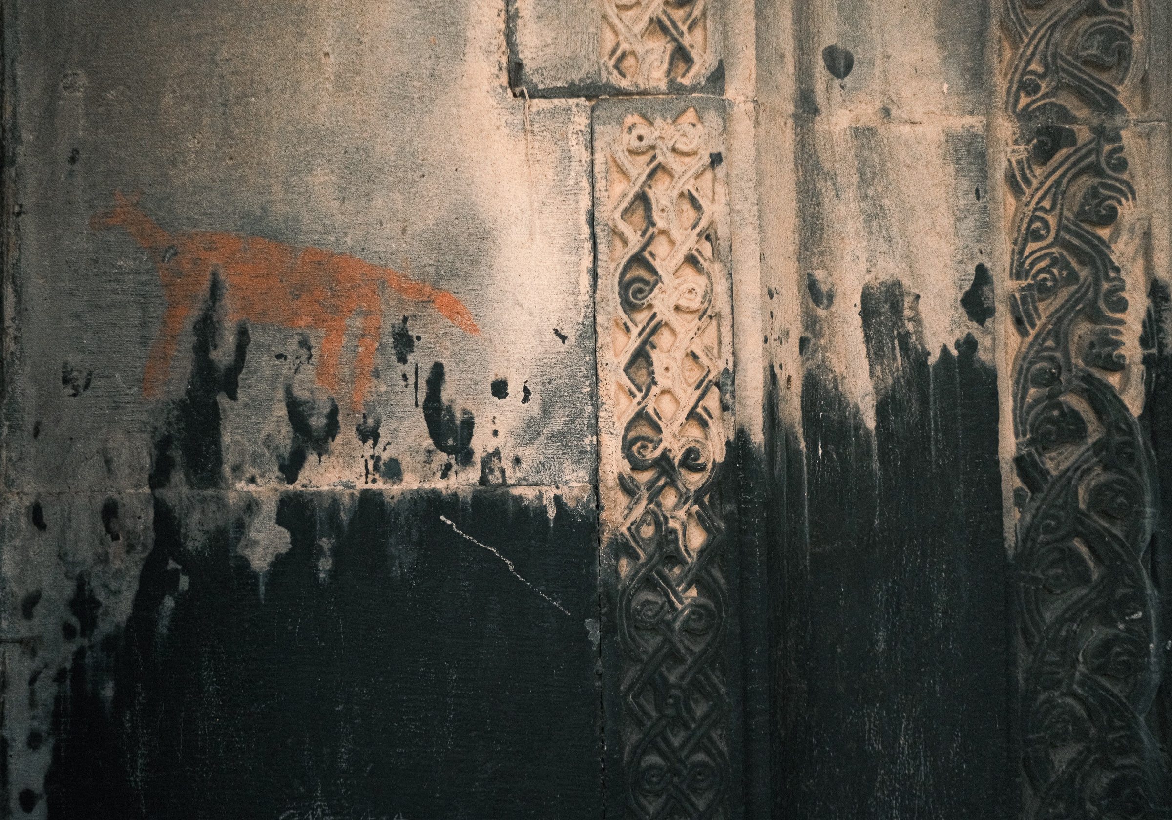 Ici, la matière religieuse n’est jamais décorative. Elle est mêlée à l’érosion, aux surfaces, aux murs, aux intérieurs et aux gestes.