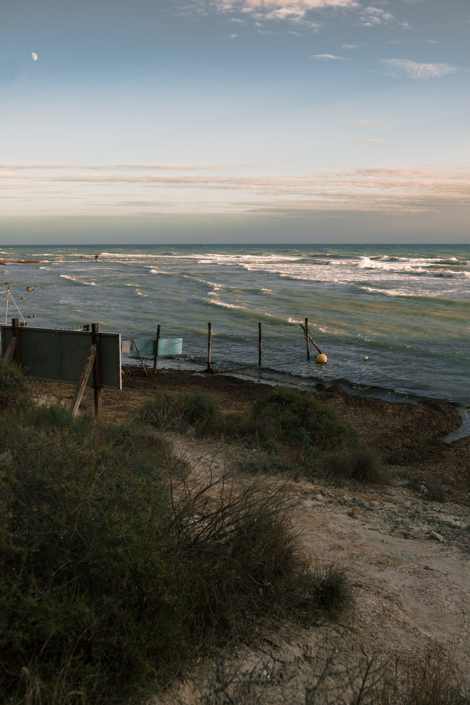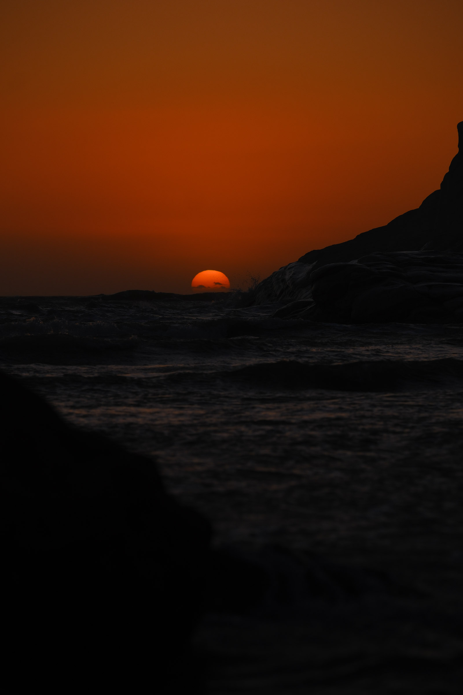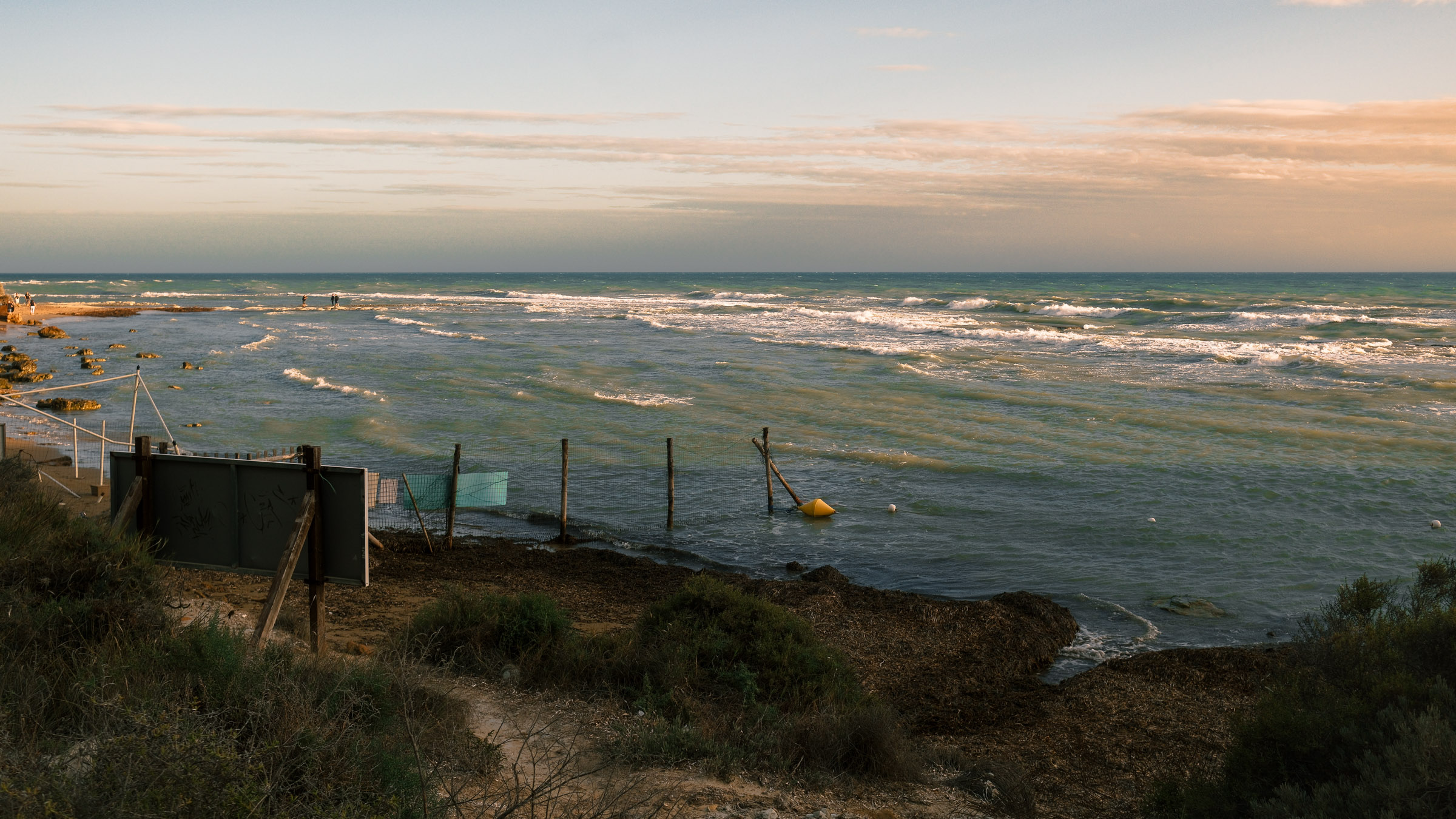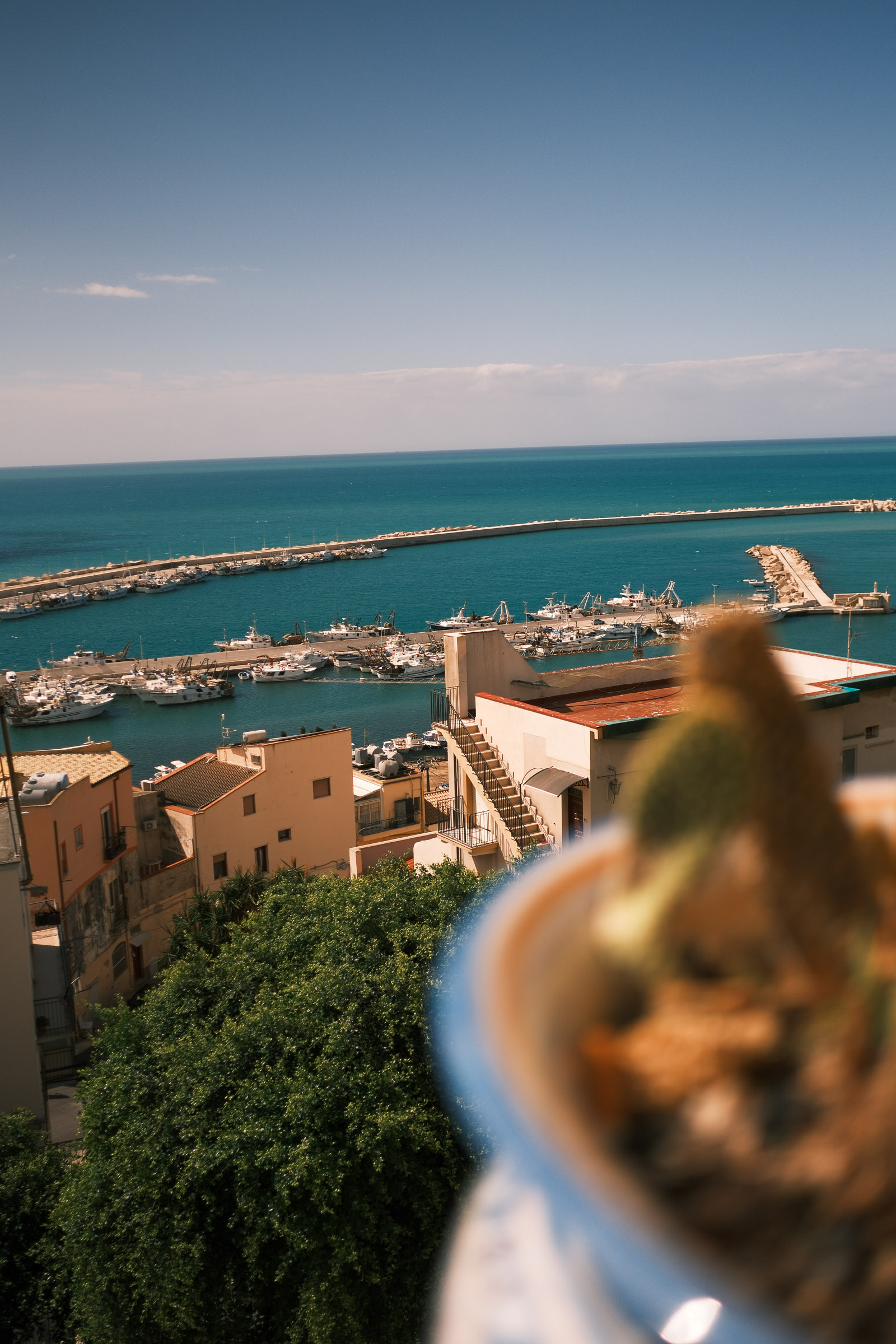 Entre Cefalù et Agrigente, les falaises tombent dans la mer et le soleil finit en rouge. Le vent souffle fort. Il n'y a pas grand monde.