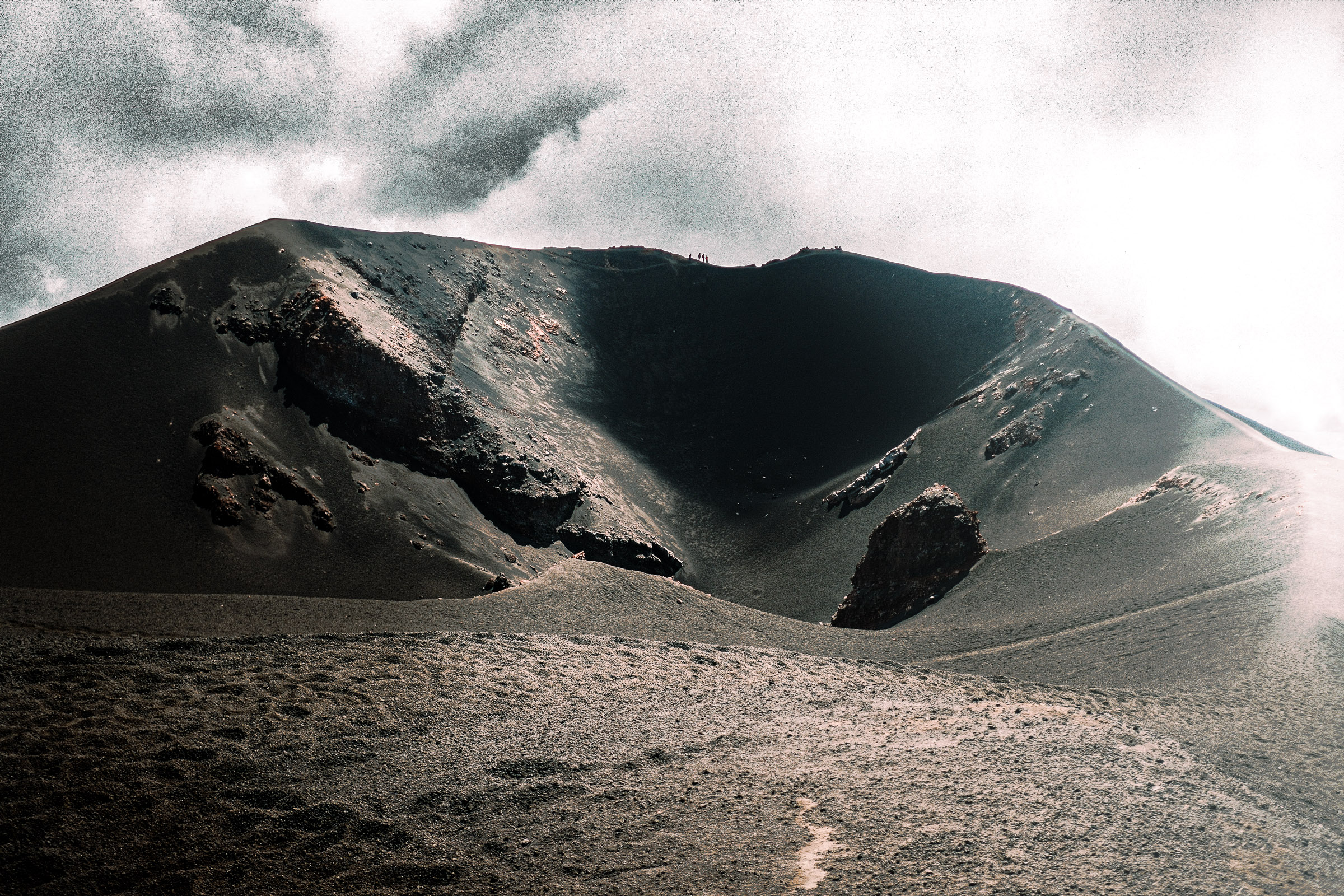 L'Etna est actif. Les guides portent des casques rouges. La fumée monte du cratère. La lave est froide mais le sol tremble légèrement. On marche dans quelque chose qui n'est pas tout à fait de la terre.