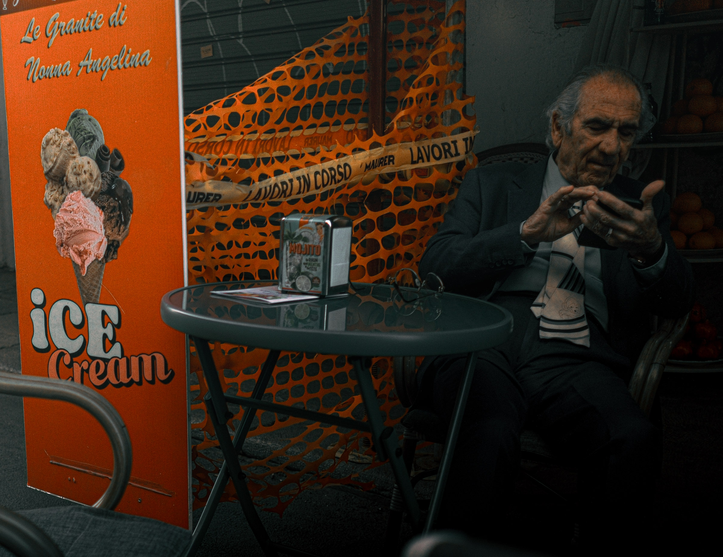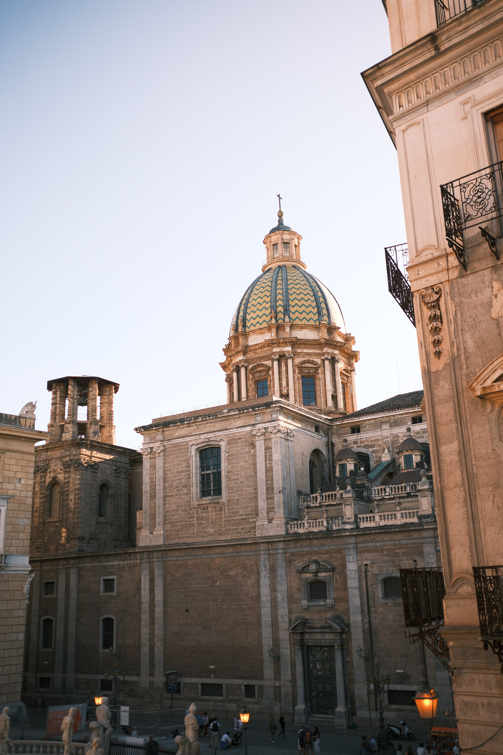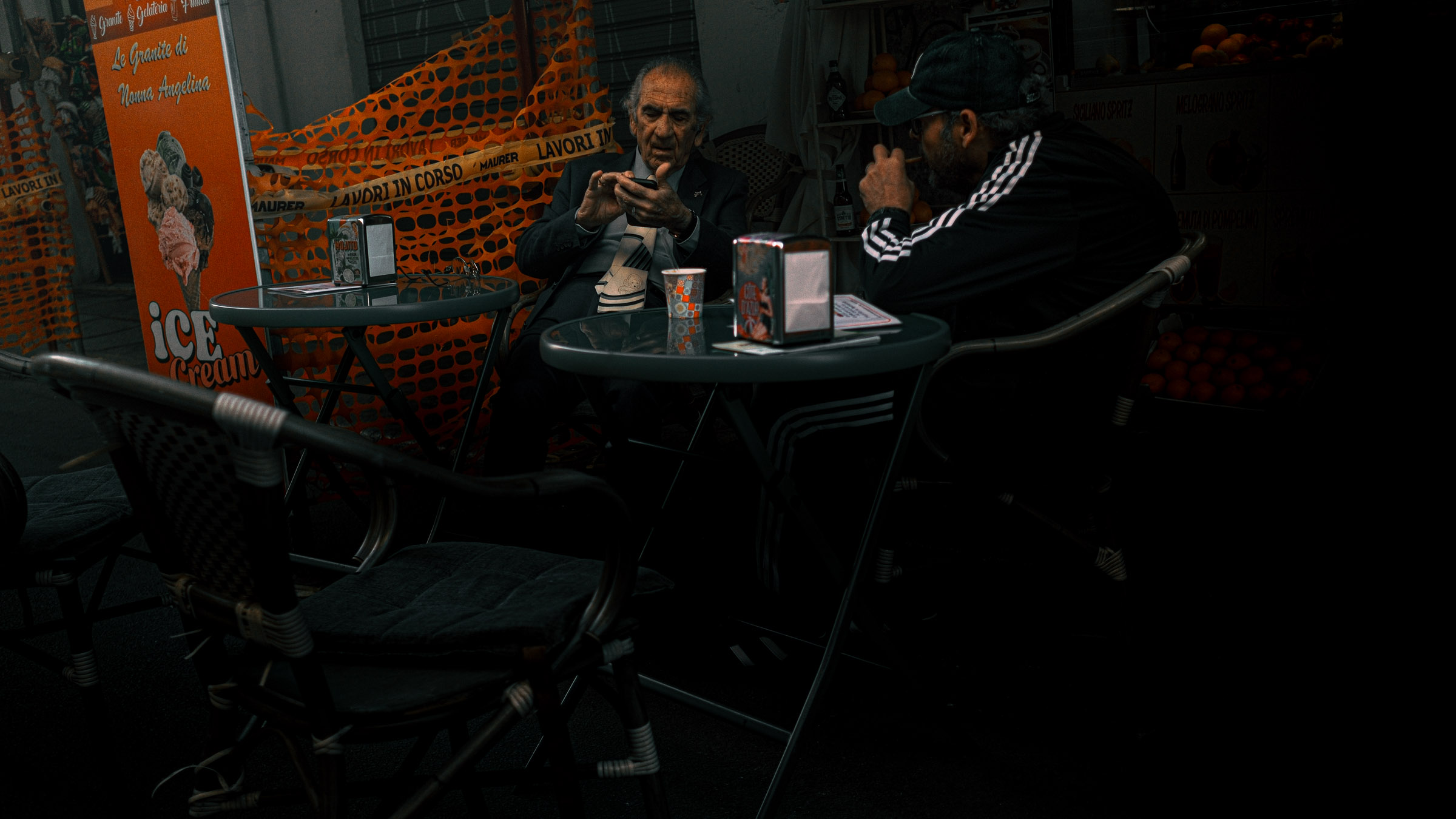 Les marchés, les terrasses, les hommes attablés. La vie sicilienne s'organise dehors, dans la chaleur et la lumière tardive.